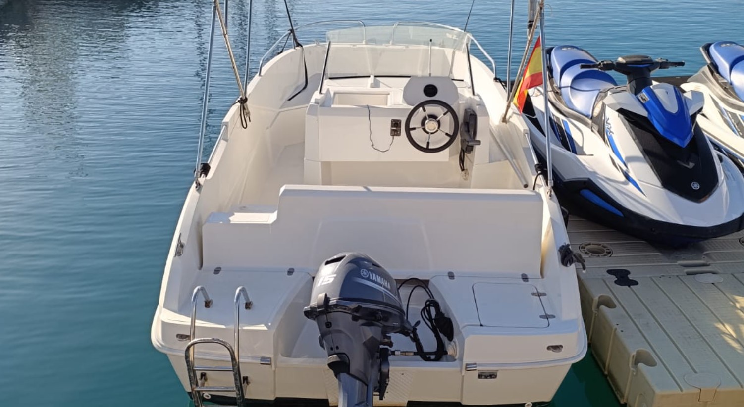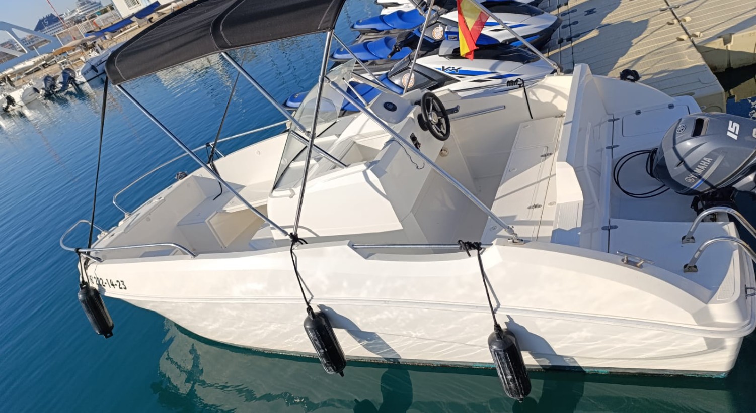 Disfruta del mar a tu ritmo con nuestra embarcación disponible para hasta 6 personas, ideal para pasar un día inolvidable en el agua sin necesidad de tener titulación. Fácil de manejar, segura y perfecta para explorar o relajarte bajo el sol. ¡Solo sube a bordo y empieza la aventura!